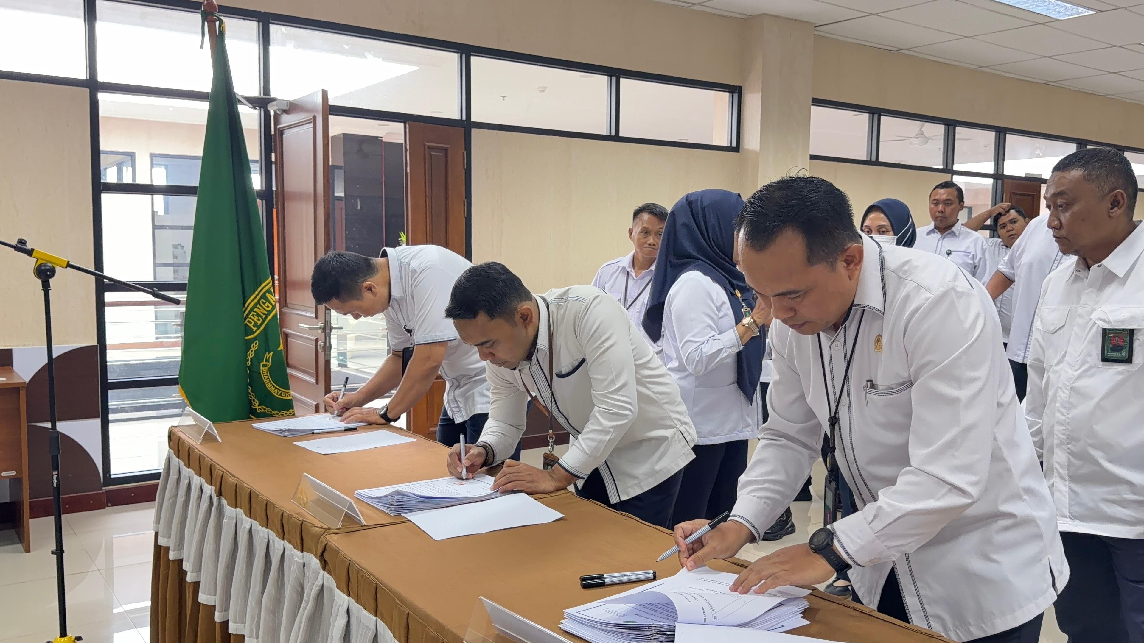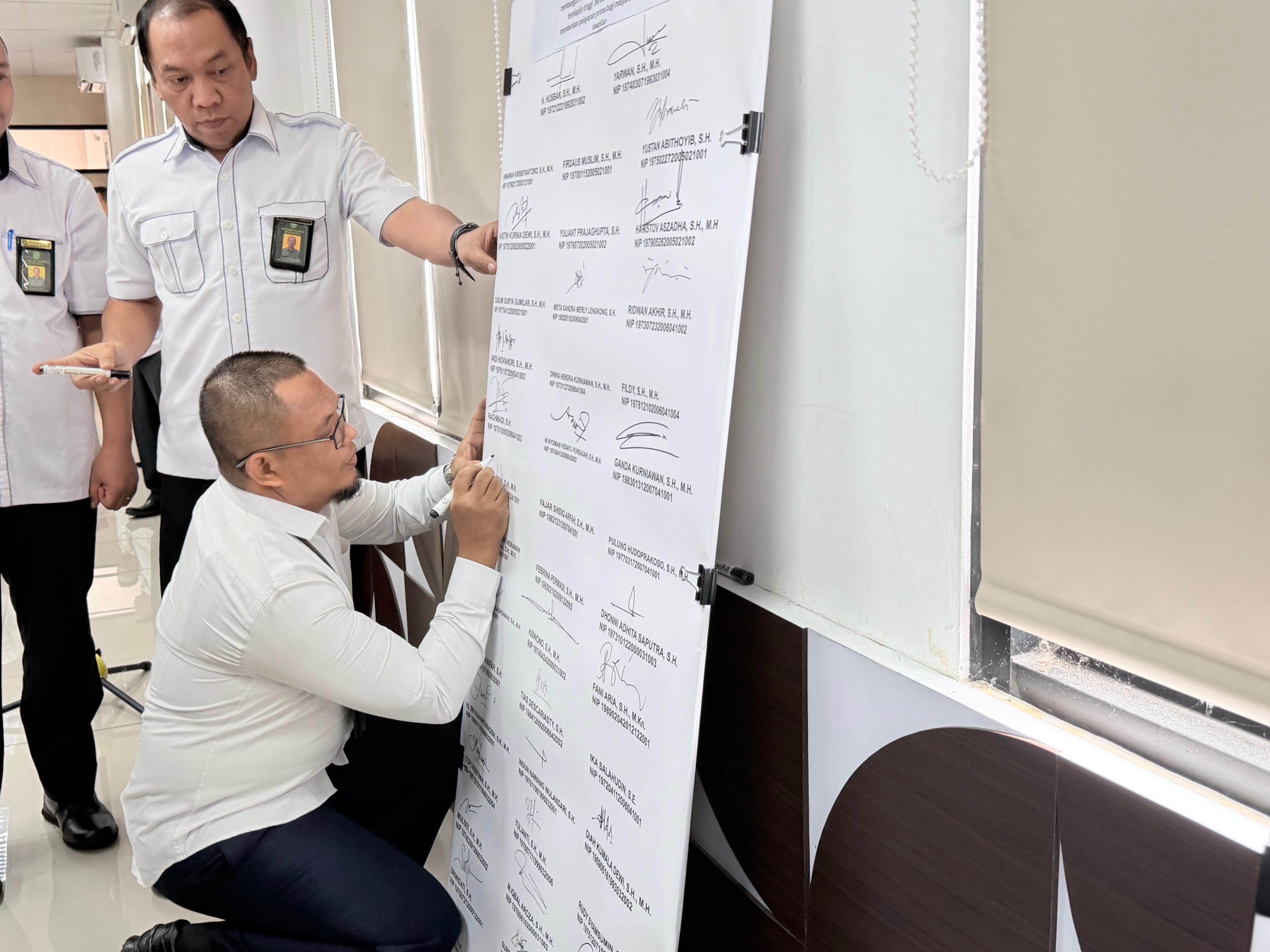 Acara kemudian dilanjutkan dengan penandatanganan Pakta Integritas dan Perjanjian Kinerja, yang diawali oleh Ketua PTUN Jakarta, Wakil Ketua, para Hakim, dan diikuti oleh seluruh jajaran Pengadilan Tata Usaha Negara Jakarta. Penandatanganan ini merupakan wujud nyata komitmen bersama dalam meningkatkan kinerja, profesionalitas, serta akuntabilitas lembaga peradilan.