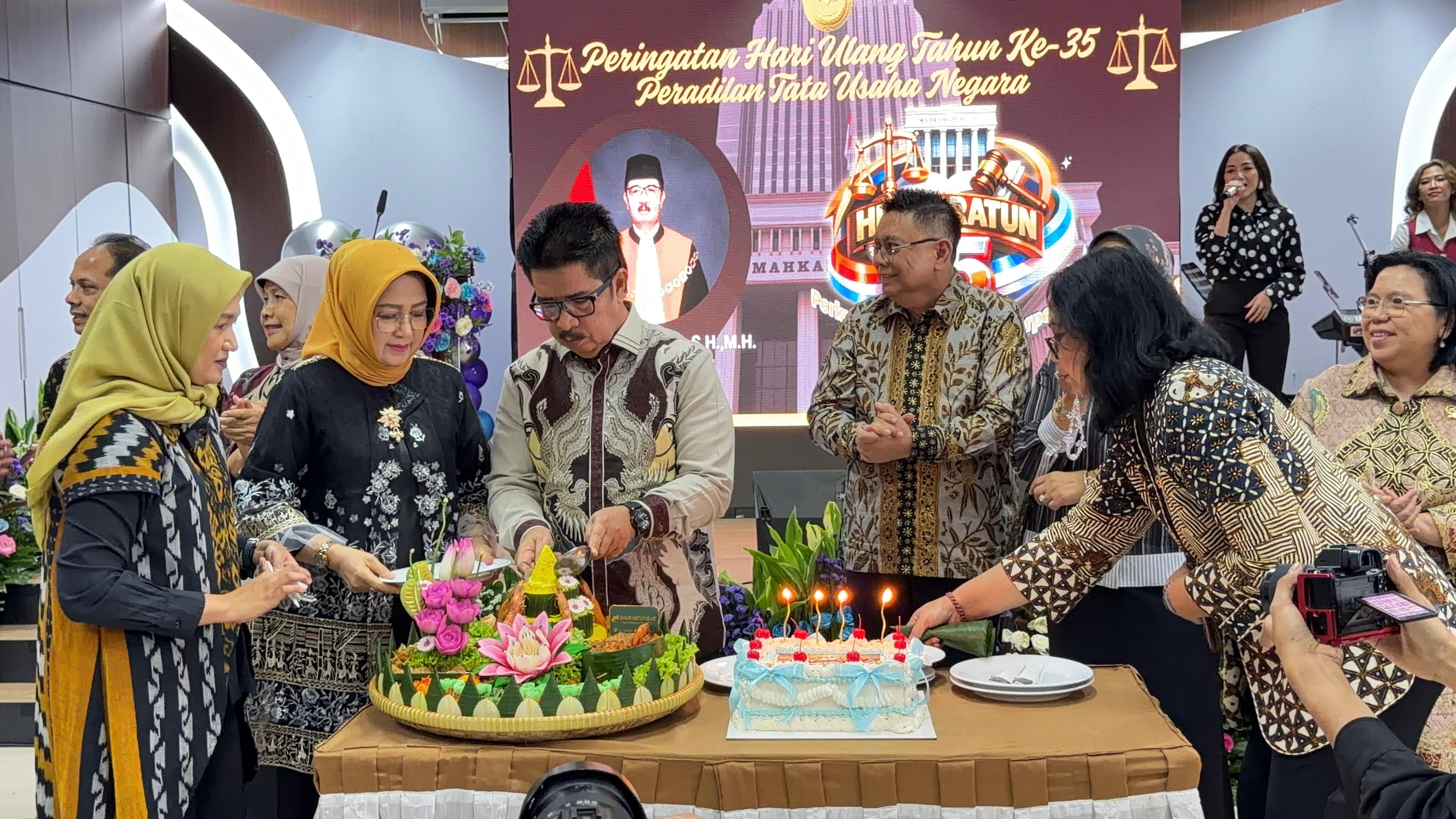 Sebagai puncak acara, dilaksanakan prosesi pemotongan tumpeng dan kue ulang tahun sebagai simbol rasa syukur atas perjalanan 35 tahun Peradilan Tata Usaha Negara. Dalam rangkaian acara ini juga diselenggarakan pemberian santunan kepada anak yatim sebagai bentuk kepedulian sosial dan wujud rasa syukur. Kegiatan tasyakuran kemudian ditutup dengan sesi foto bersama seluruh tamu undangan dan keluarga besar PTUN Jakarta.