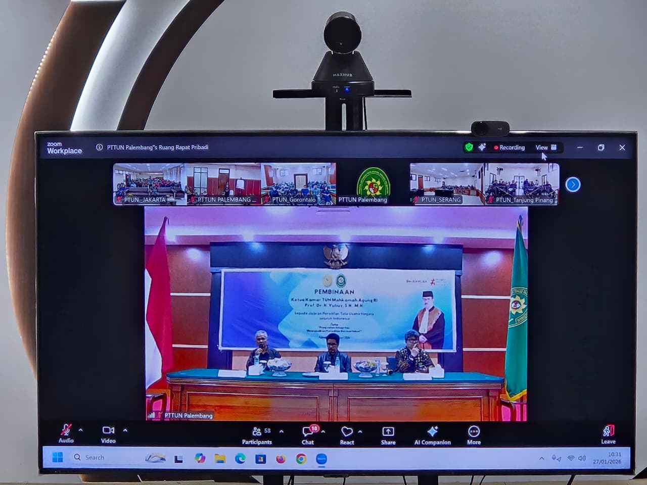 Dalam rangka meningkatkan kualitas pelayanan serta kinerja aparatur peradilan, Pengadilan Tata Usaha Negara (PTUN) Jakarta turut serta dalam kegiatan Pembinaan oleh Yang Mulia Ketua Kamar Tata Usaha Negara Mahkamah Agung Republik Indonesia yang dilaksanakan secara hybrid pada Selasa, 27 Januari 2026.