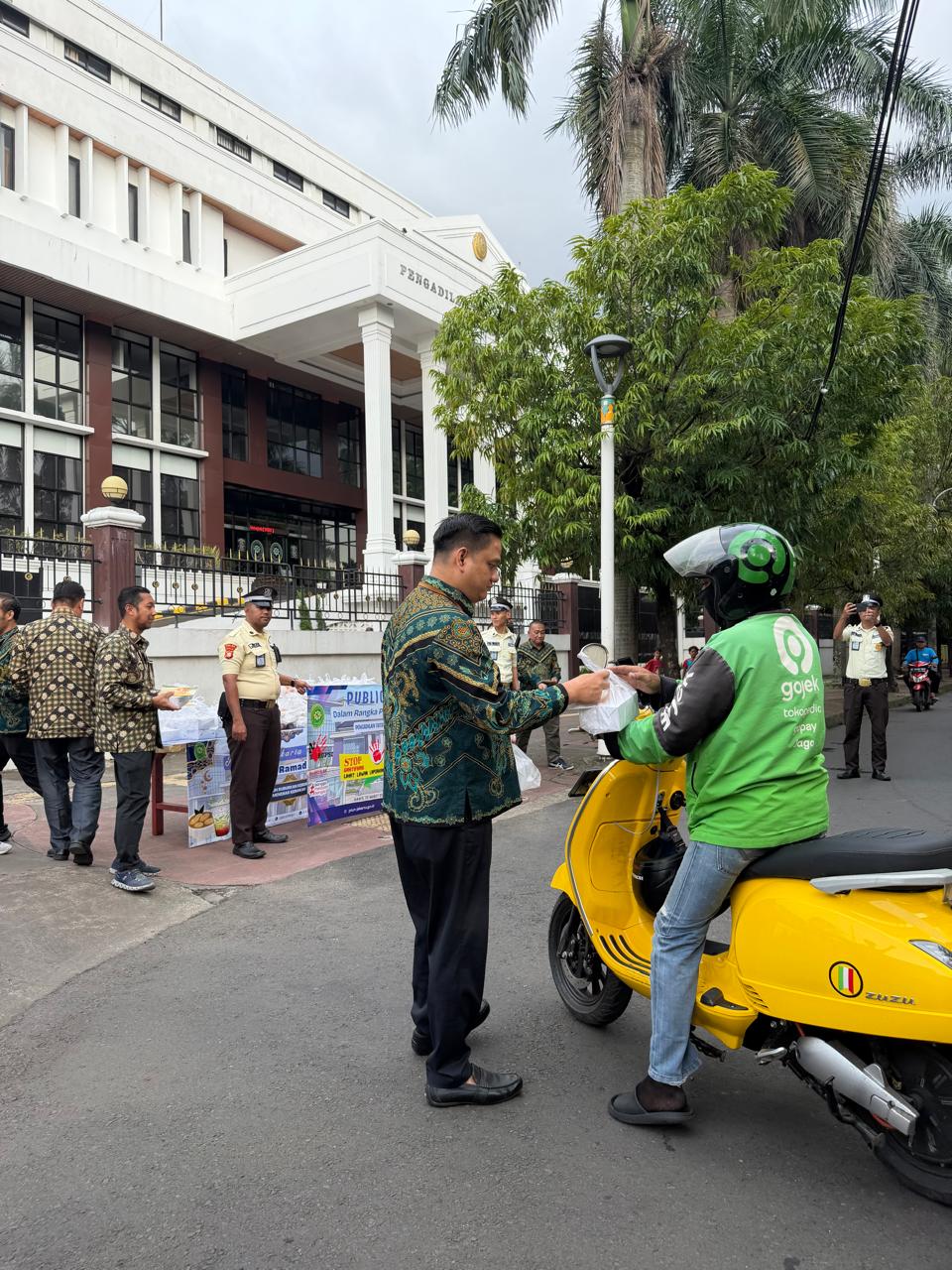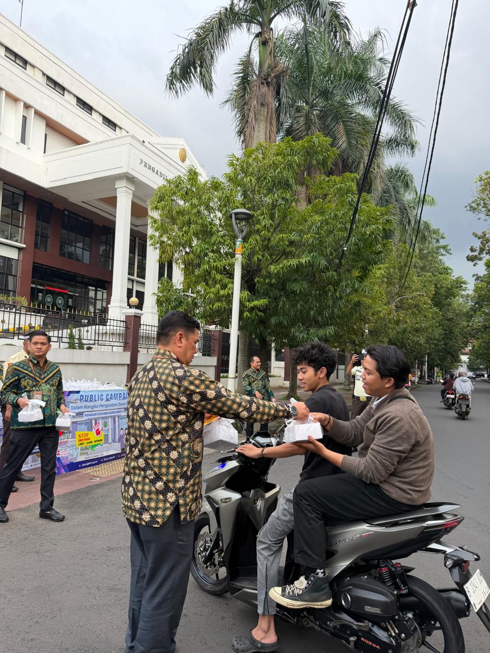 Public campaign ini bukan sekadar kegiatan formal, melainkan aksi simpatik yang menyentuh langsung masyarakat. Sambil menyuarakan gerakan anti gratifikasi, pimpinan dan aparatur PTUN Jakarta juga membagikan paket takjil kepada warga serta pengendara yang melintas di sekitar kantor pengadilan. Kegiatan ini mencerminkan semangat berbagi sekaligus memperkuat pesan integritas kepada publik.
