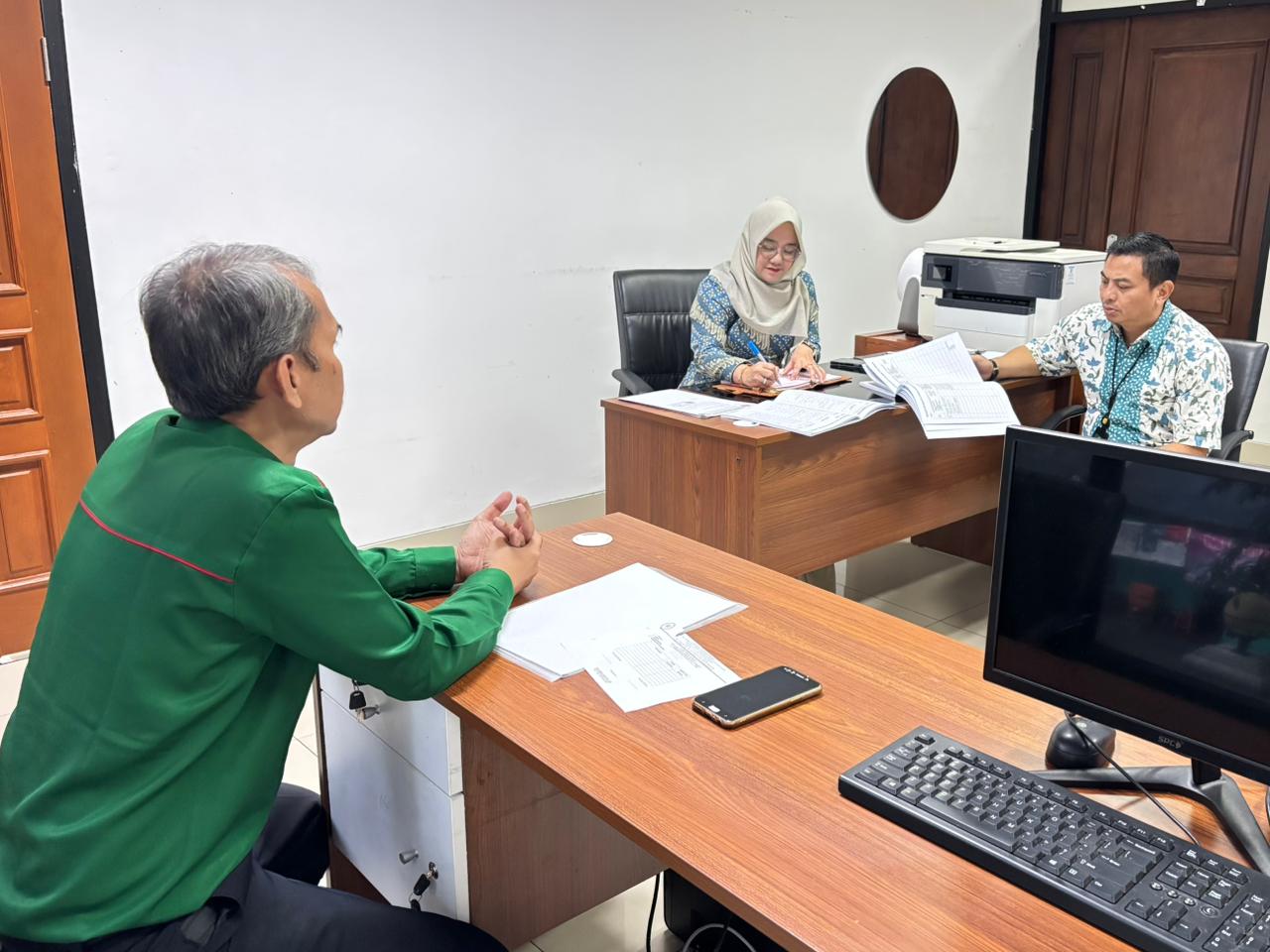 Dalam kegiatan monitoring ini, dibahas berbagai aspek penting terkait pelaksanaan layanan Posbakum. Fokus utama meliputi evaluasi terhadap kendala yang dihadapi selama pelayanan, pengecekan register perkara untuk memastikan tertib administrasi, serta pembahasan pemenuhan kebutuhan sarana pendukung seperti alat tulis kantor (ATK) guna menunjang kelancaran operasional layanan.